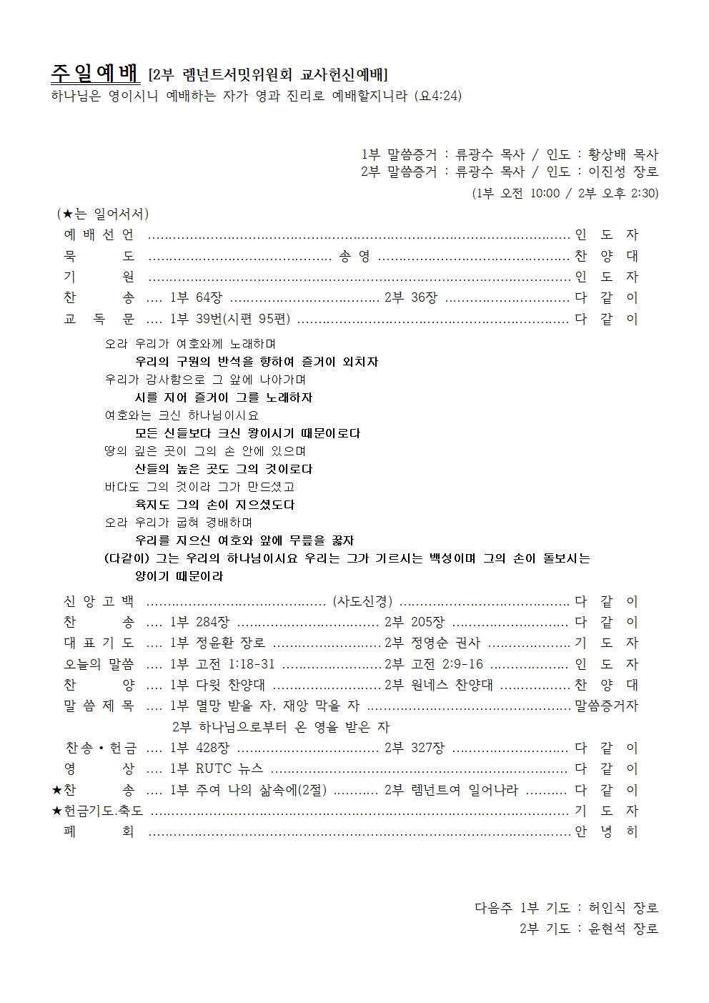 교 독 문 …. 1부 39번(시편 95편) ……………………………………………………….. 다 같 이