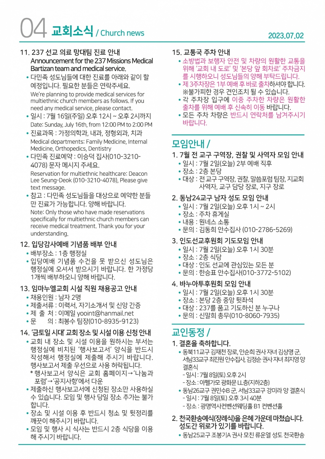 교회일정