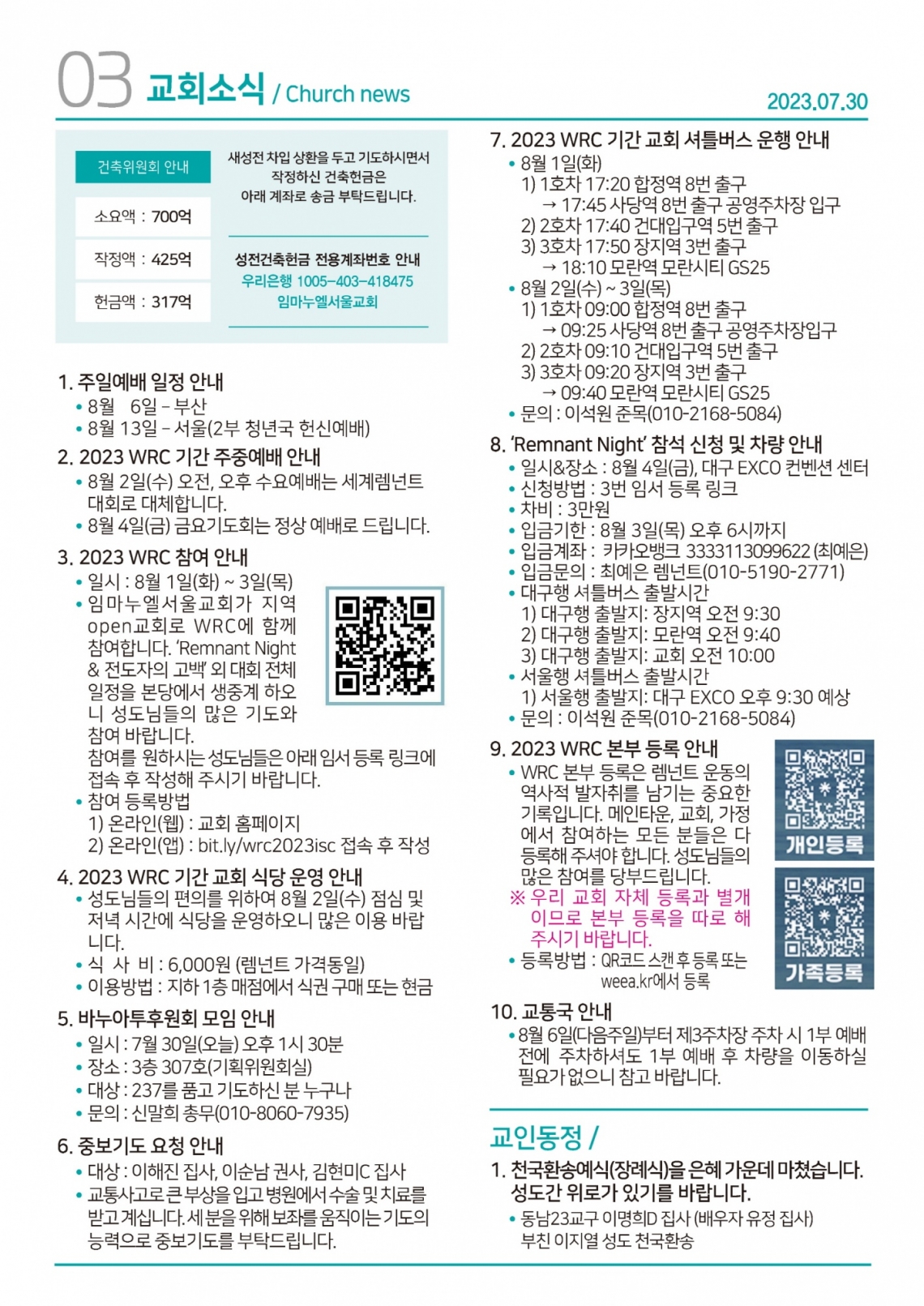 교회일정