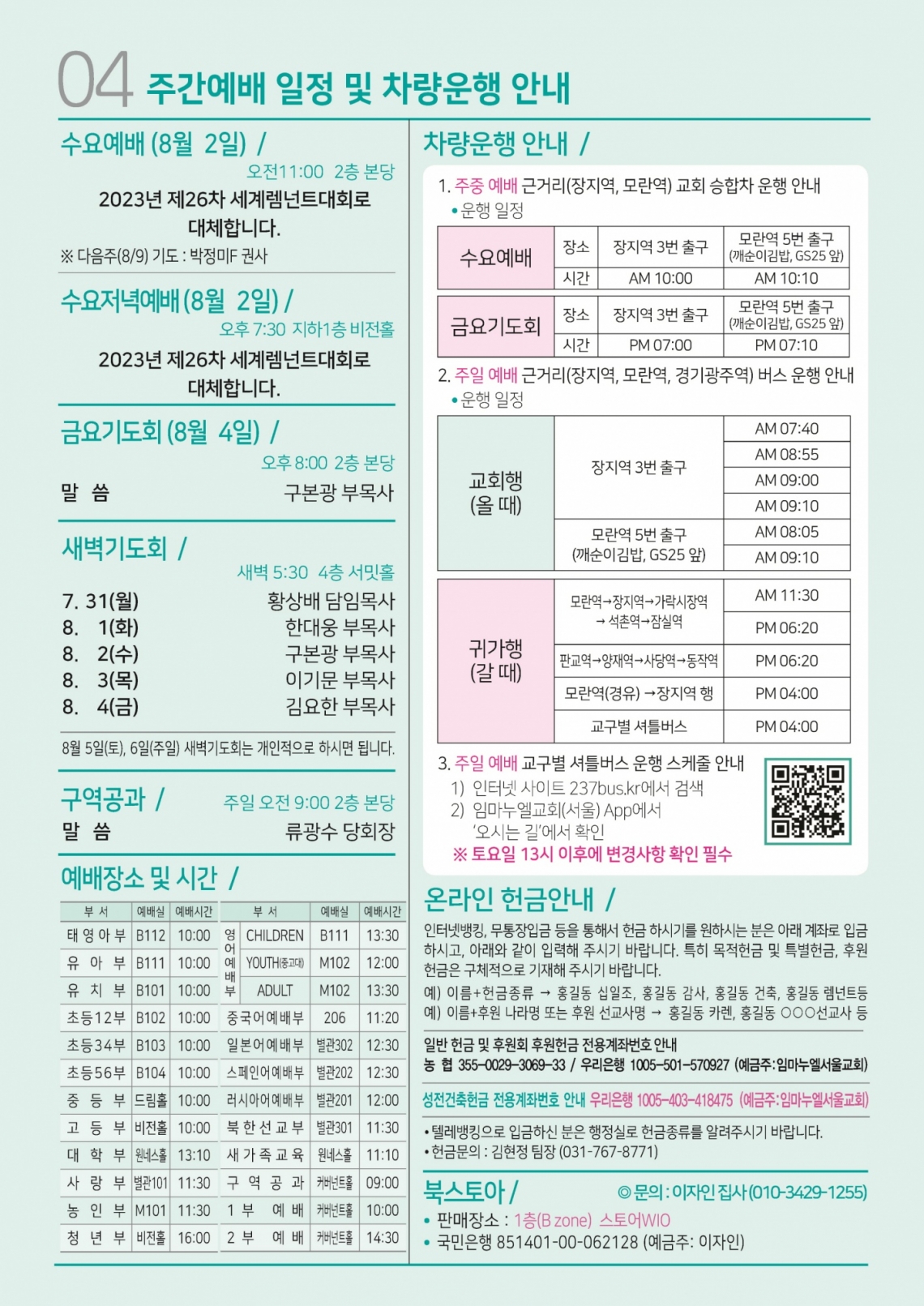 예배시간안내