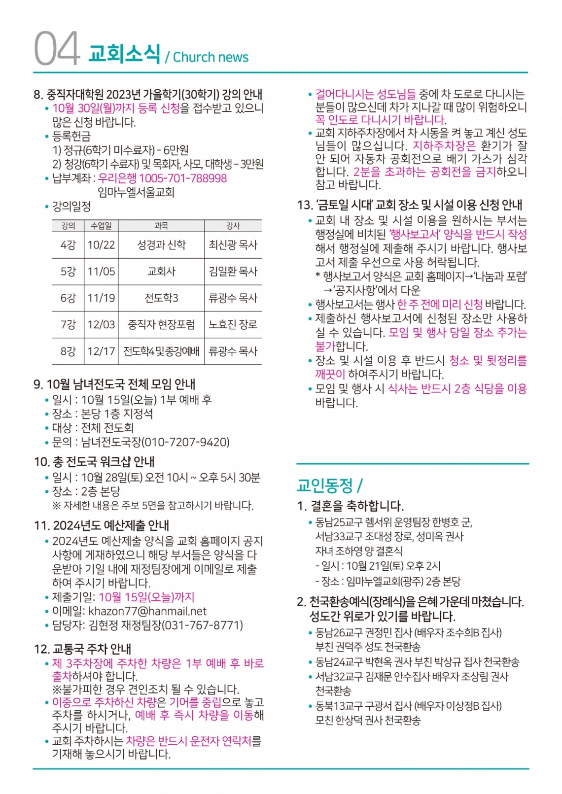 교회일정