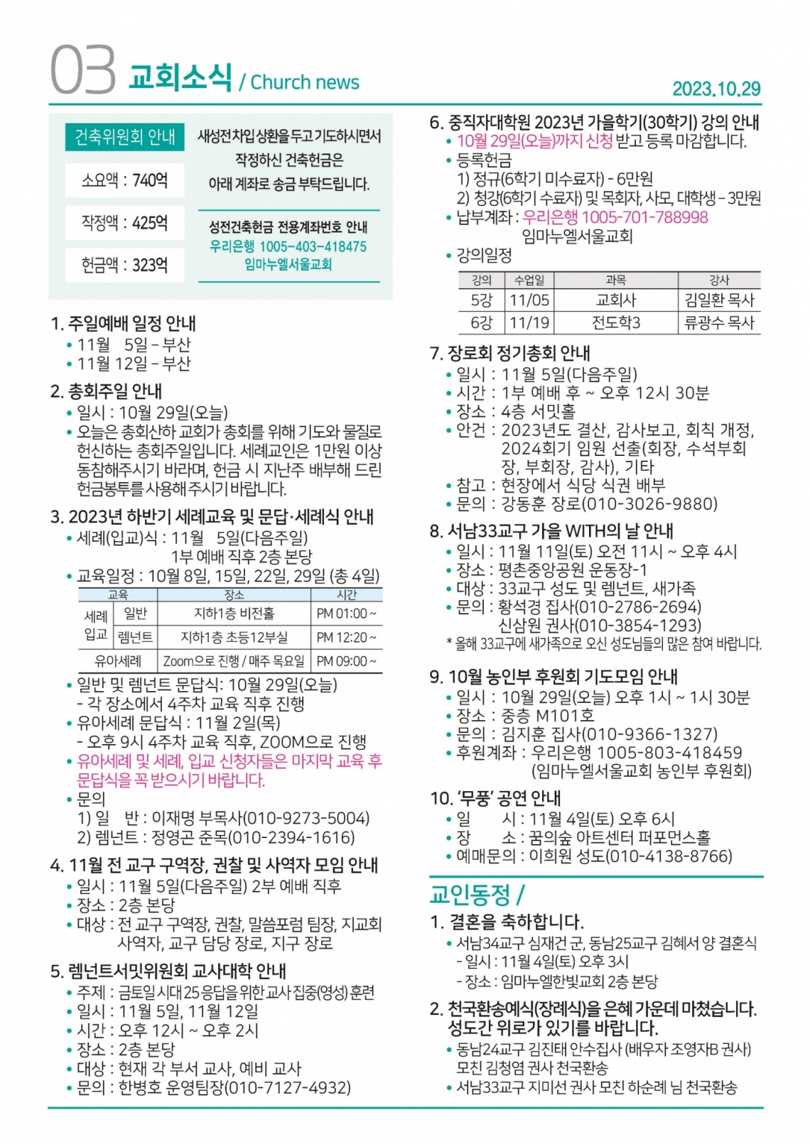 2023년 10월 29일 주보