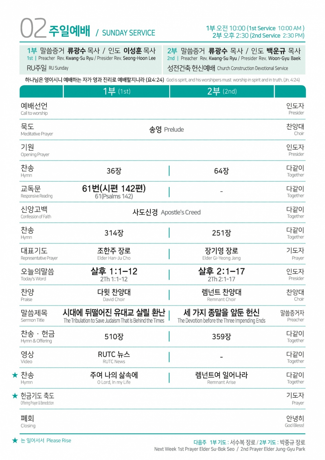 2024년 10월 20일 주일예배순서