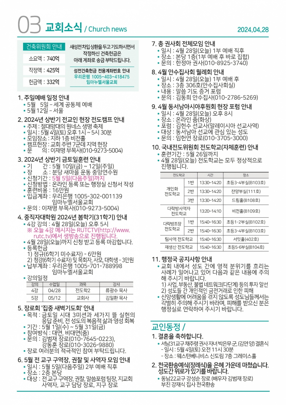 교회일정