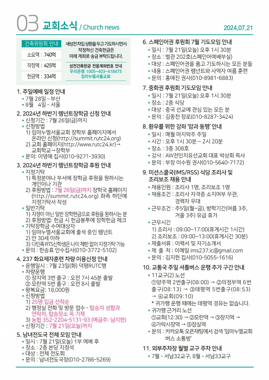 교회일정