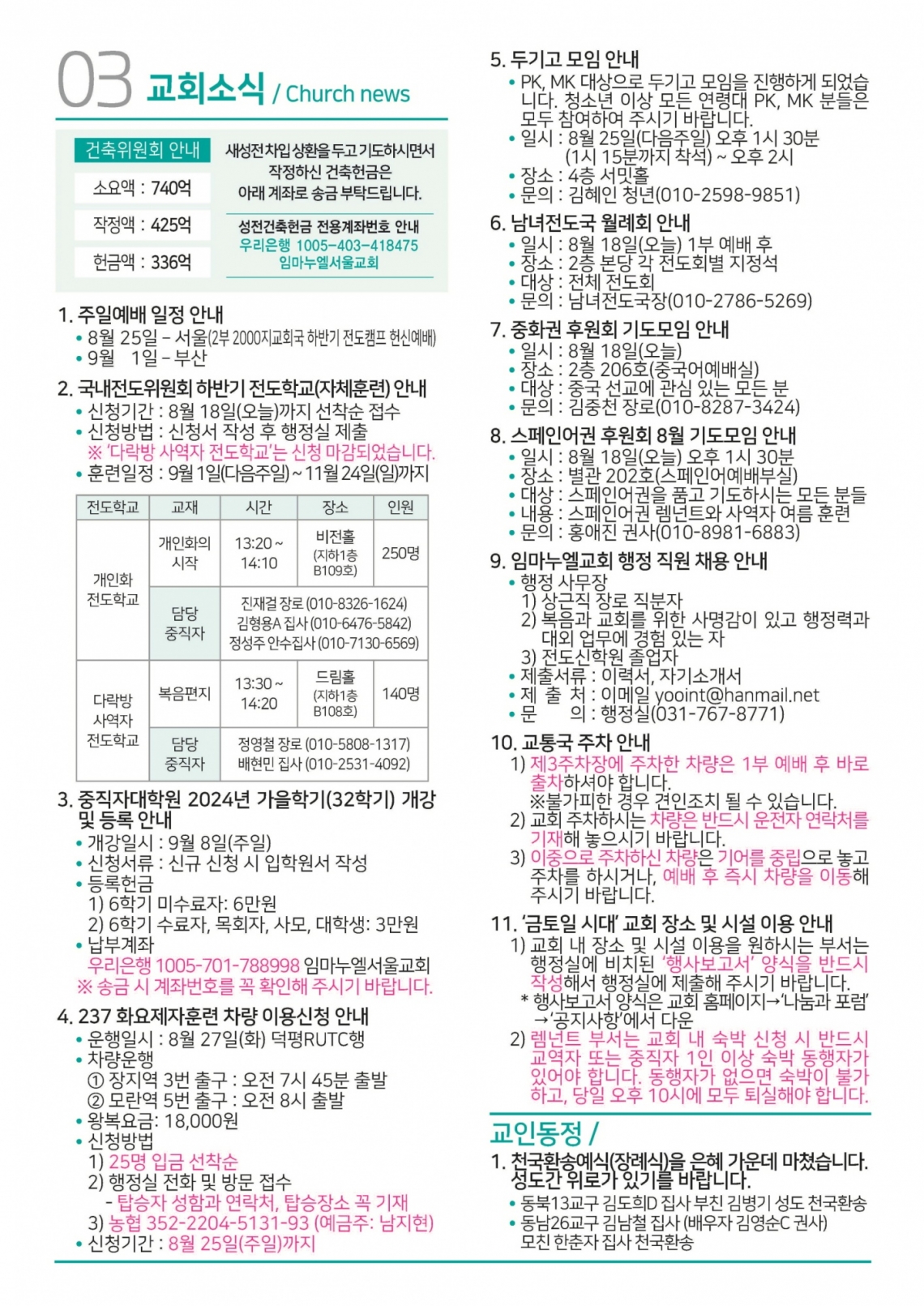 교회일정