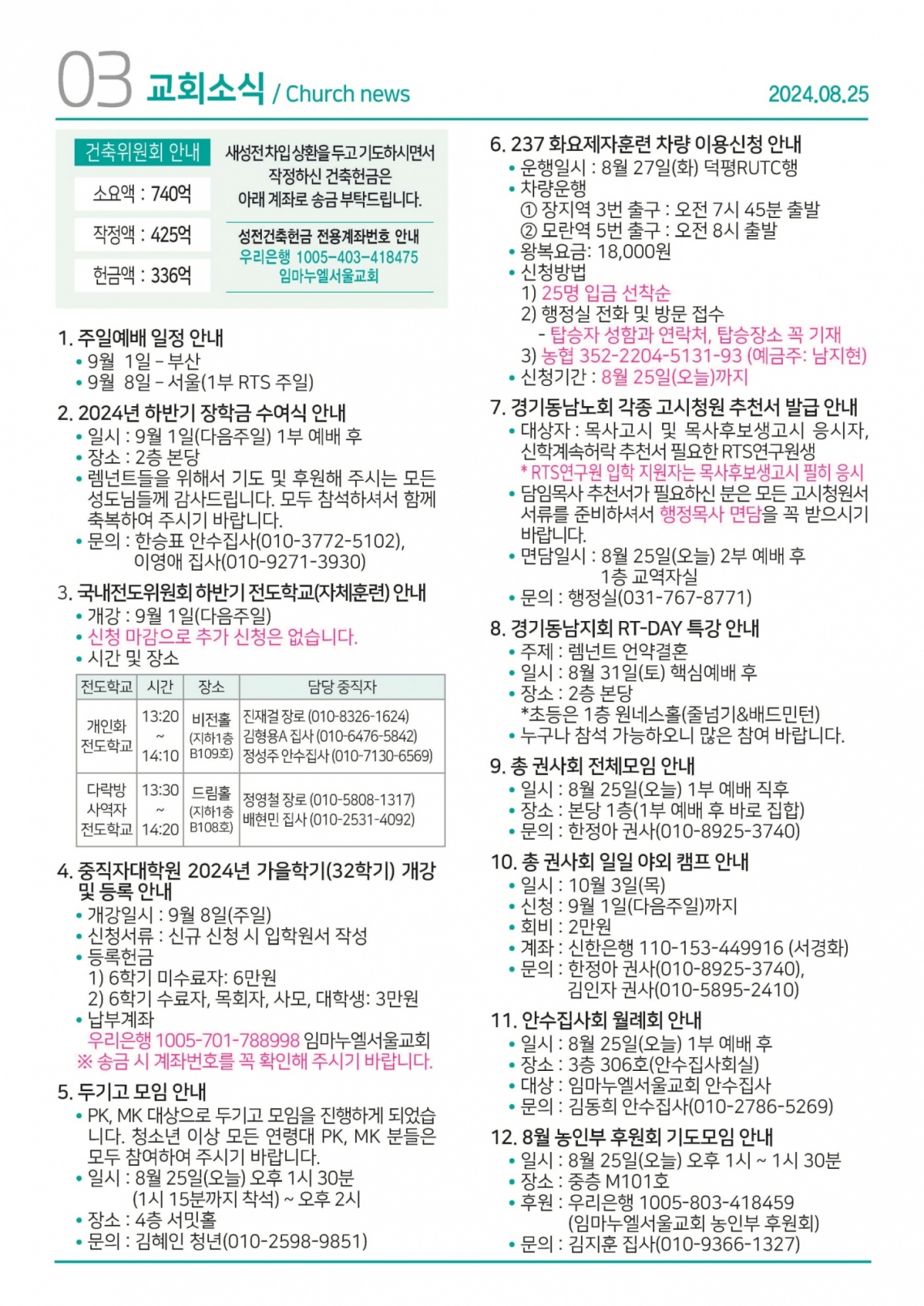 교회일정