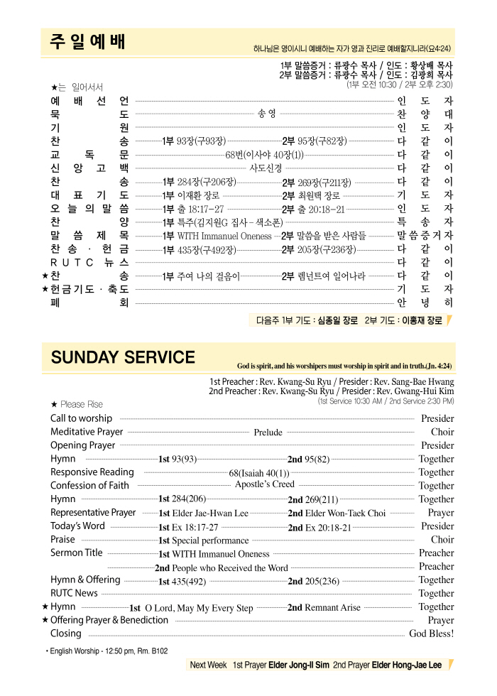 2018년 09월 02일 주일예배순서