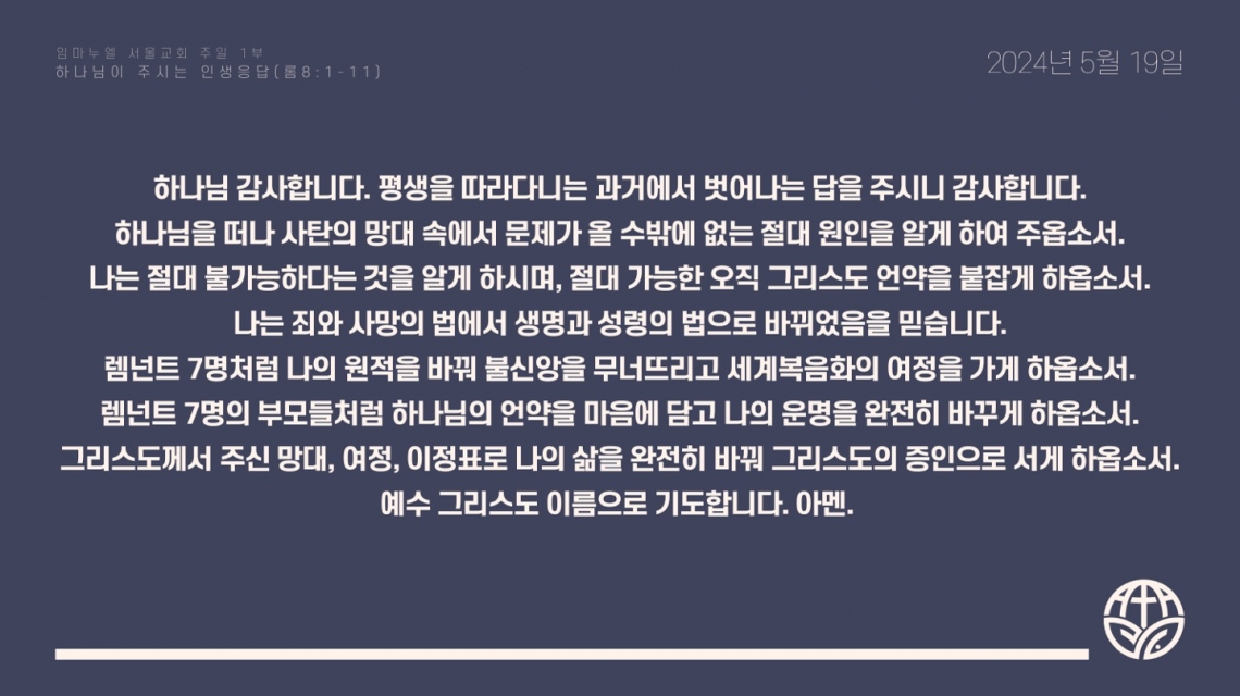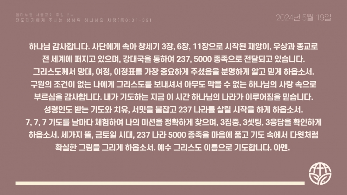 2024년 5월 19일 주일예배 기도제목