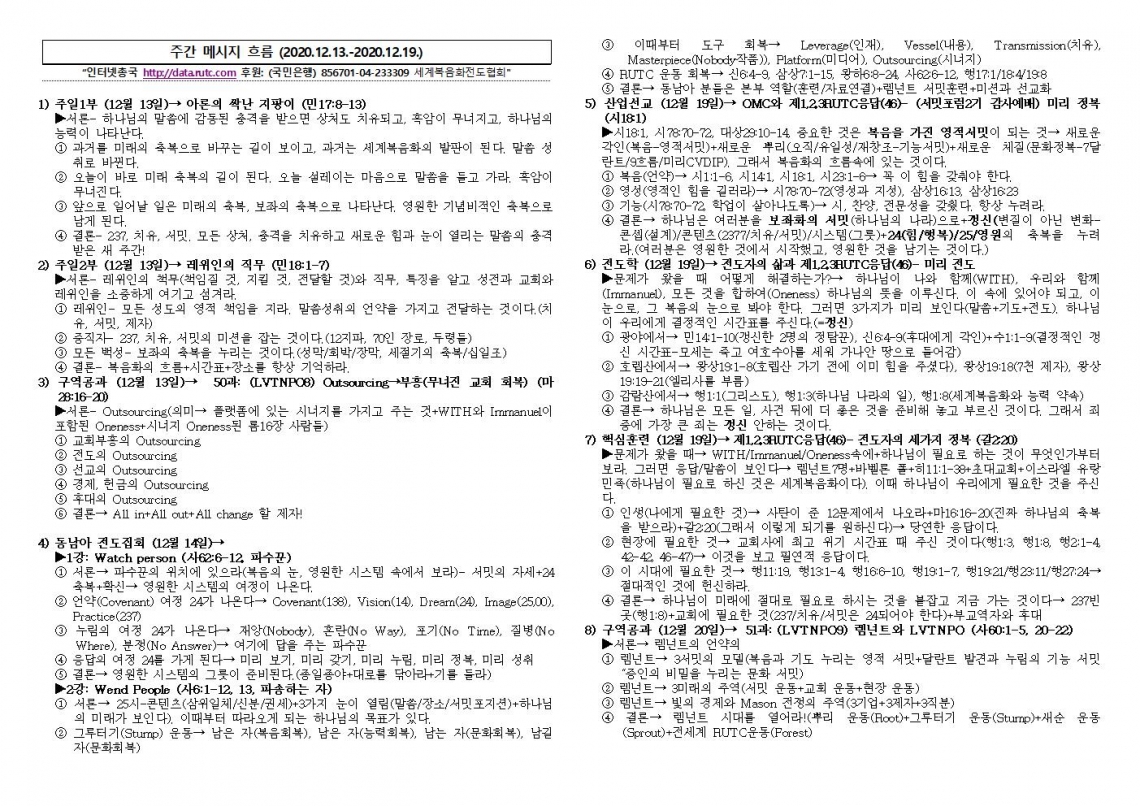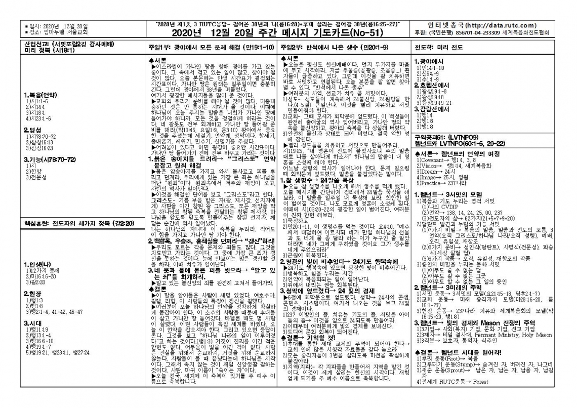 2020년 12월 20일 주일예배 메시지 기도카드