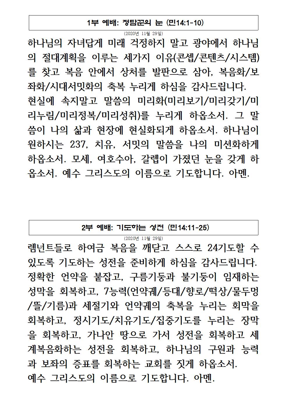 2020년 11월 29일 주일예배 기도제목 – 한국어