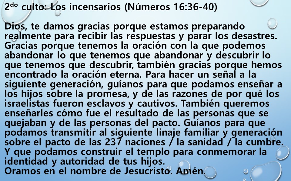 2do Culto: Los incensarios (Números 16:36-40)