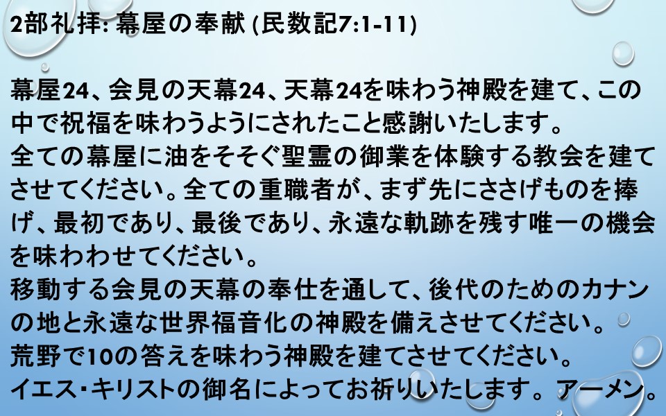 幕屋24、会見の天幕24、天幕24を味わう神殿を建て、この中で祝福を味わうようにされたこと感謝いたします。