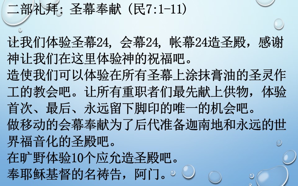二部礼拜: 圣幕奉献 (民7:1-11)
