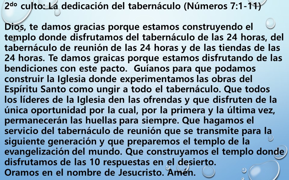 Dios, te damos gracias porque estamos construyendo el templo donde disfrutamos del tabernáculo de las 24 horas, del tabernáculo de reunión de las 24 horas y de las tiendas de las 24 horas. Te damos graicas porque estamos disfrutando de las bendiciones con este pacto.