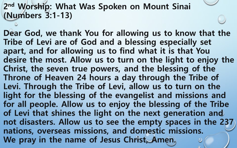 Through the Tribe of Levi, allow us to turn on the light for the blessing of the evangelist and missions and for all people.