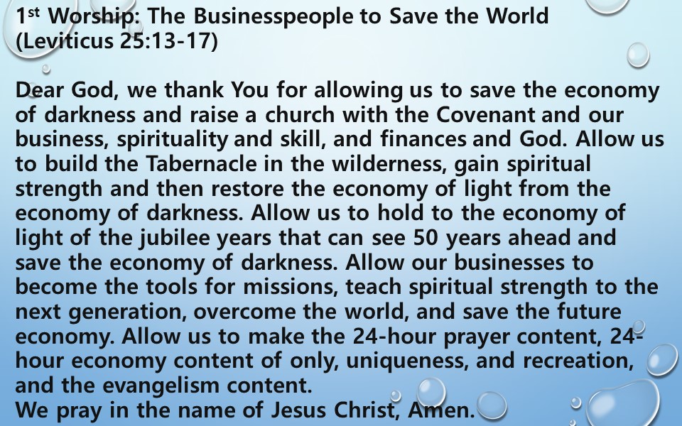 1st Worship: The Businesspeople to Save the World (Leviticus 25:13-17)