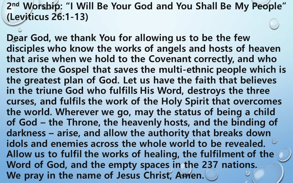 2nd Worship: “I Will Be Your God and You Shall Be My People” (Leviticus 26:1-13)