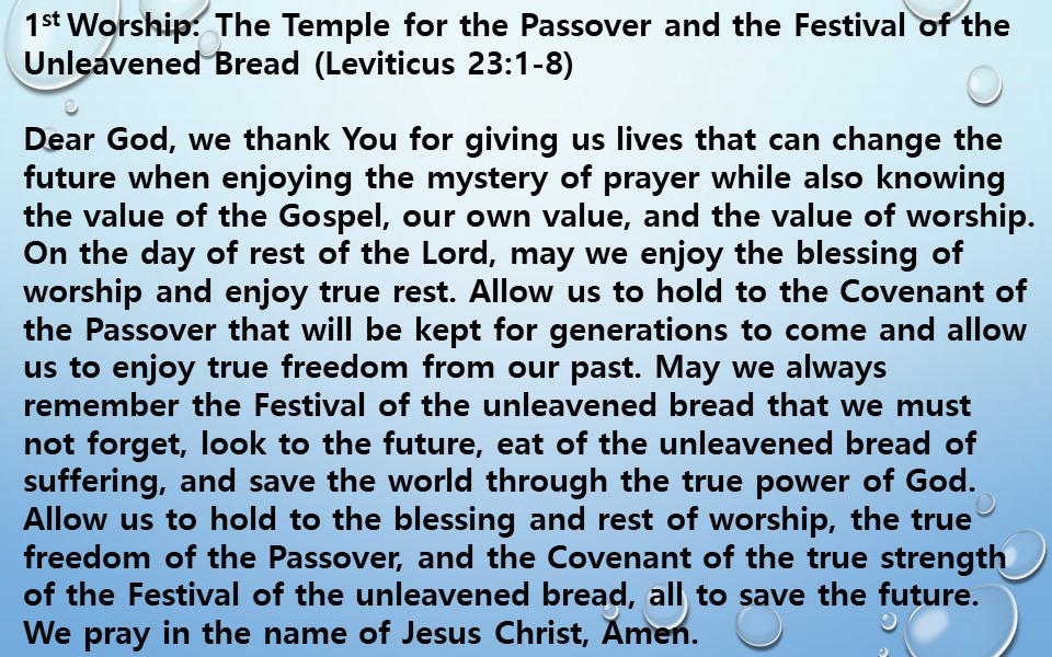1st Worship: The Temple for the Passover and the Festival of the Unleavened Bread (Leviticus 23:1-8)