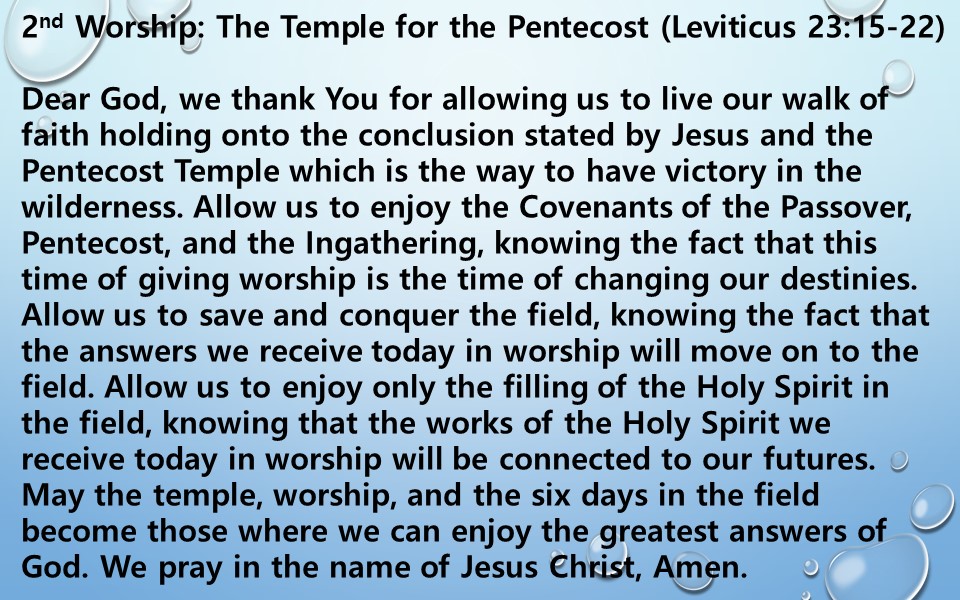 2nd Worship: The Temple for the Pentecost (Leviticus 23:15-22)