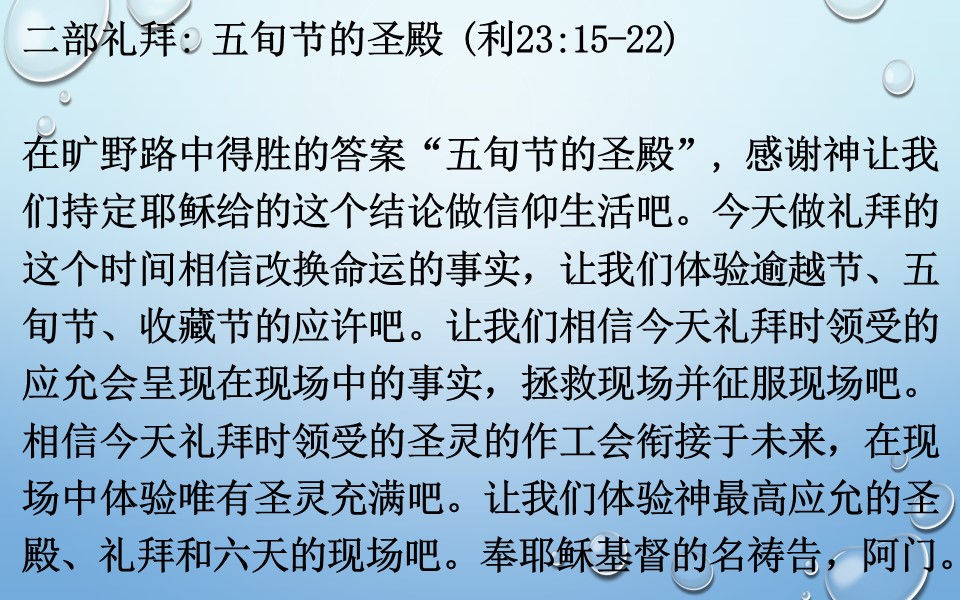在旷野路中得胜的答案“五旬节的圣殿”, 感谢神让我们持定耶稣给的这个结论做信仰生活吧。