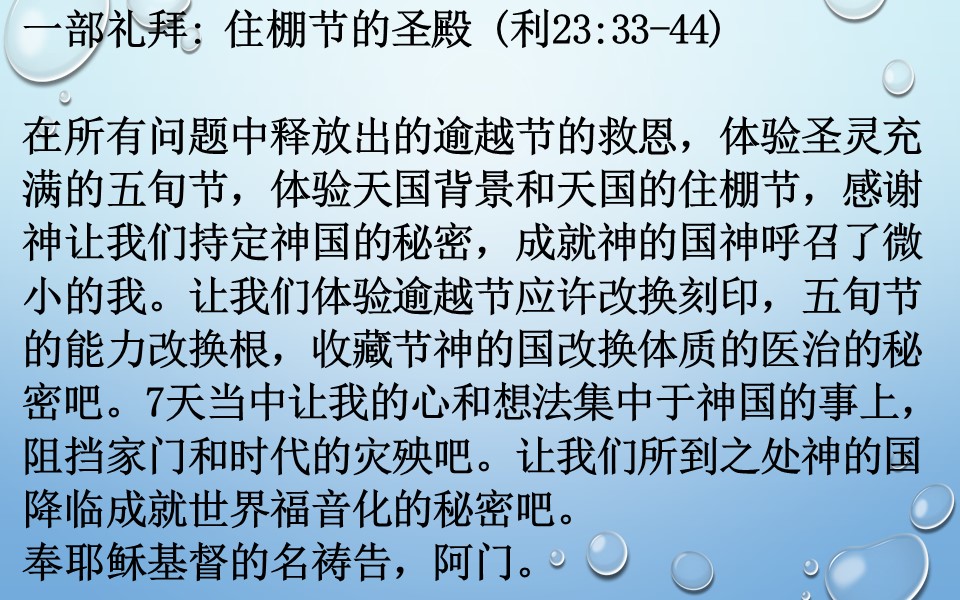 一部礼拜: 住棚节的圣殿 (利23:33-44)