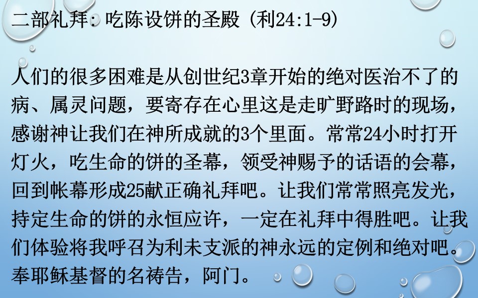 二部礼拜: 吃陈设饼的圣殿 (利24:1-9)