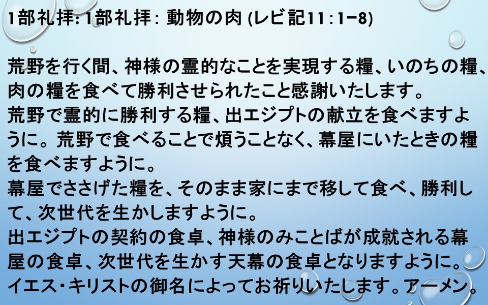幕屋でささげた糧そのままにまで移して食べ、勝利して次世代を生かしますように。