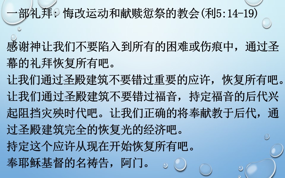 一部礼拜: 悔改运动和献赎愆祭的教会(利5:14-19)