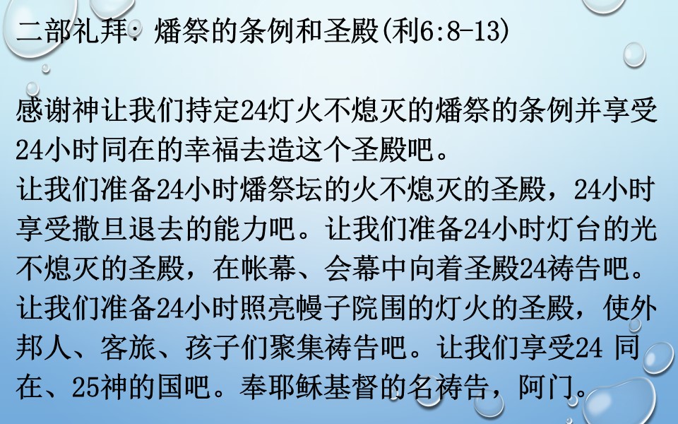 二部礼拜: 燔祭的条例和圣殿(利6:8-13)
