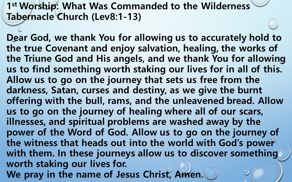 Dear God, we thank You for allowing us to prepare the temple that discovers the blessings meant for the many young adults and associate pastoral ministers, and will also raise the gifted Remnants who will receive the greatest answers, block disasters and prepare the future.