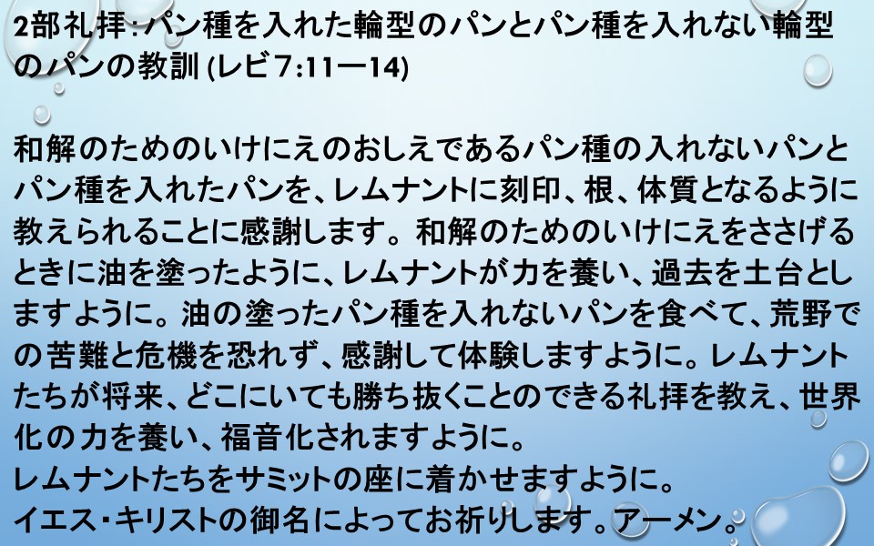 和解のためのいけにえのおしえであるパン種の入れないパンとパン種を入れたパンを、レムナントに刻印、根、体質となるように教えられることに感謝します。