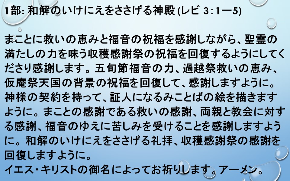 まことに救いの恵みと福音の祝福を感謝しながら、聖霊の満たしの力を味う収穫感謝祭の祝福を回復するようにしてくださり感謝します。