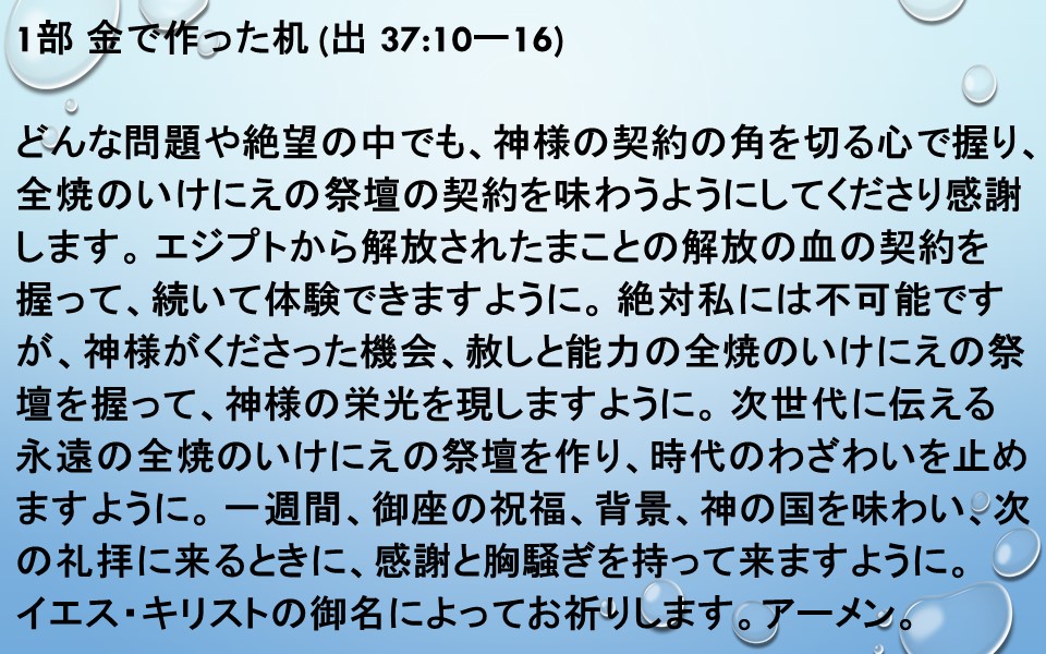 1部 金で作った机 (出 37:10ー16)