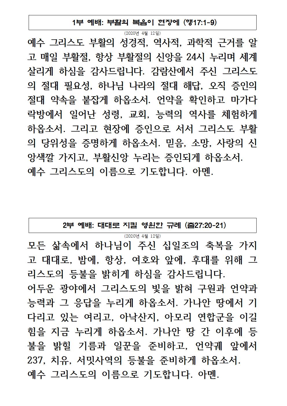 2020년 4월 12일 주일예배 기도제목 – 한국어