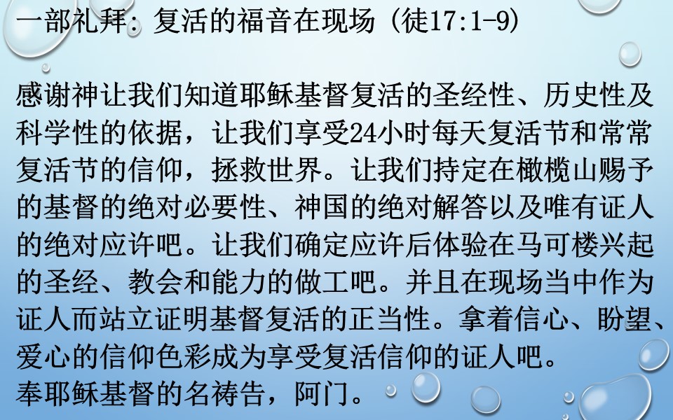 一部礼拜: 复活的福音在现场 (徒17:1-9)