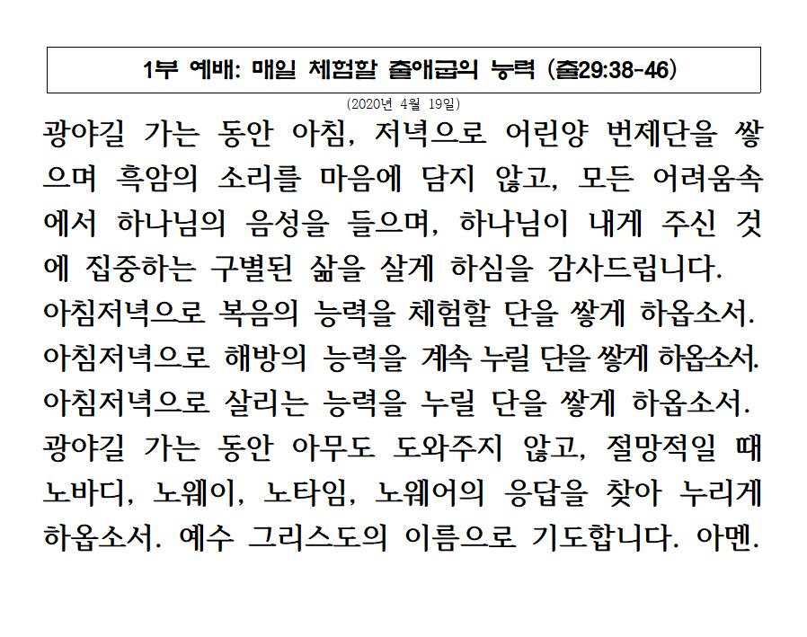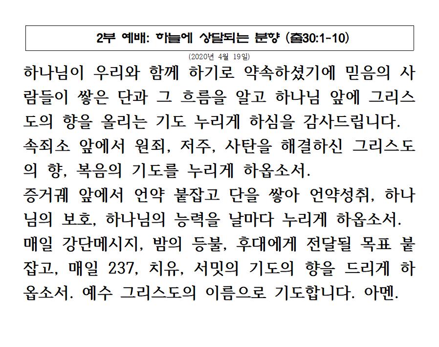 2020년 4월 19일 주일예배 기도제목 – 한국어