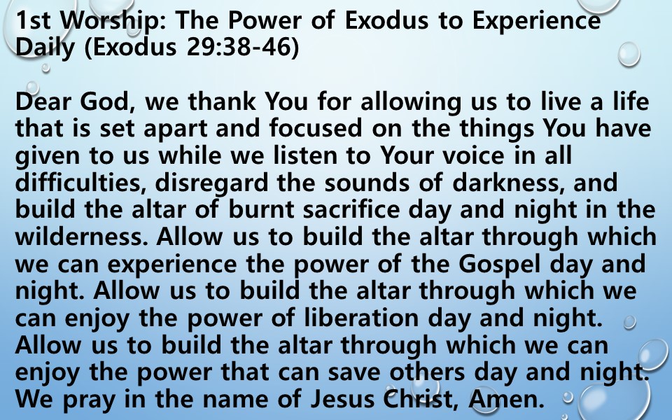 1st Worship: The Power of Exodus to Experience Daily (Exodus 29:38-46)