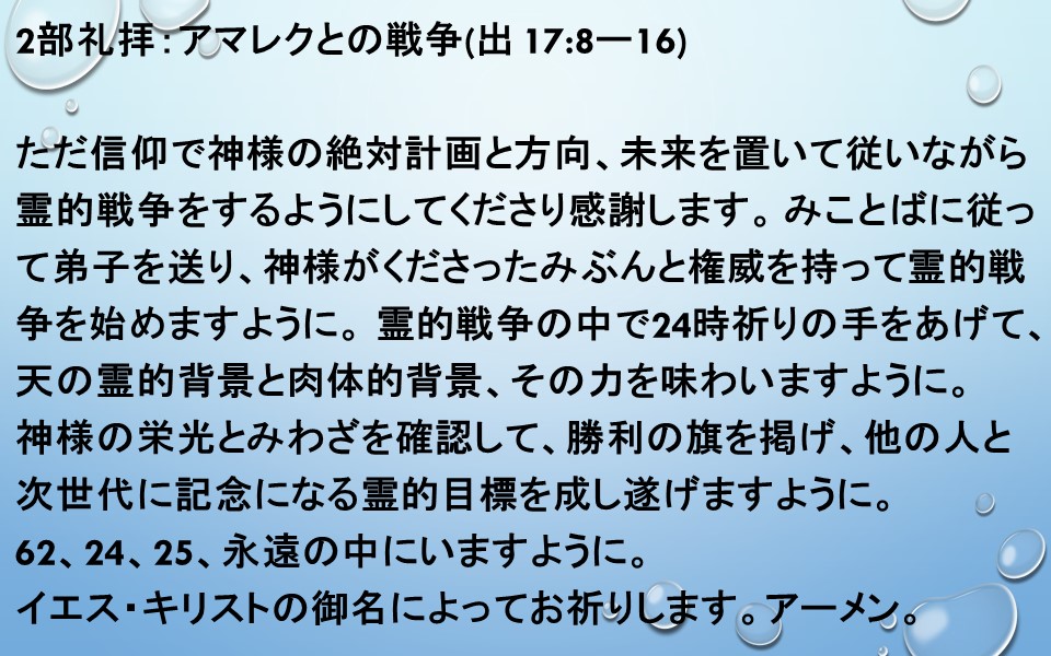 2部礼拝:アマレクとの戦争(出 17:8ー16)