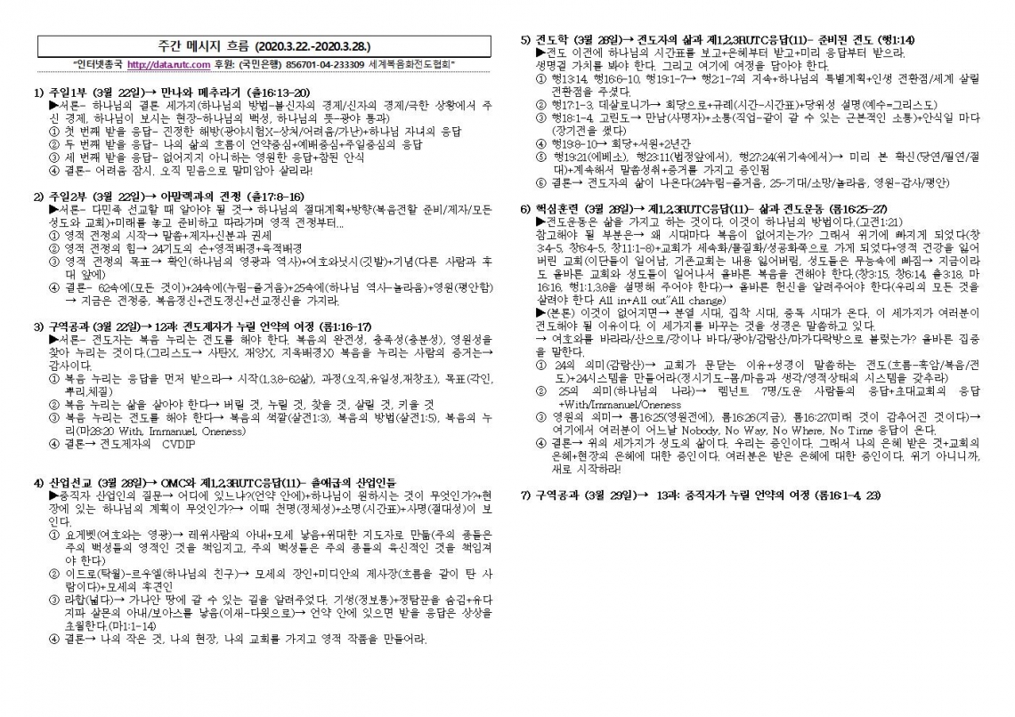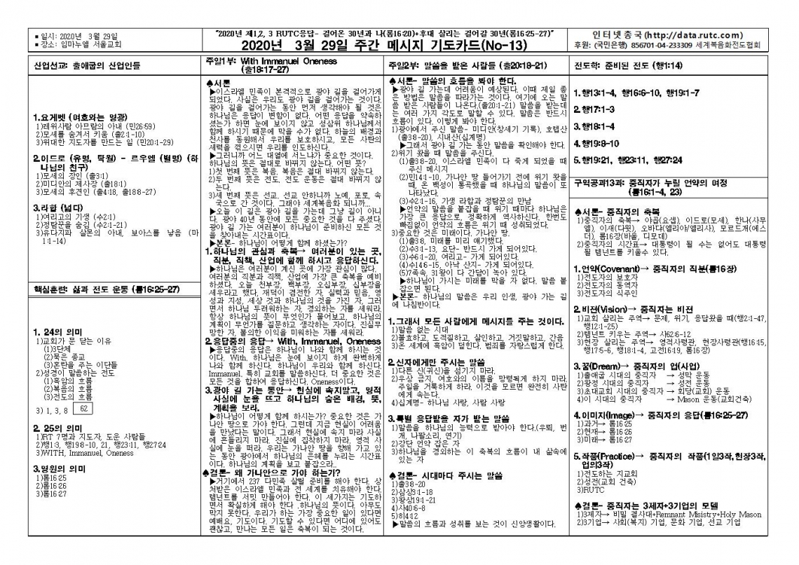 2020년 3월 29일 주일예배 메시지 기도카드