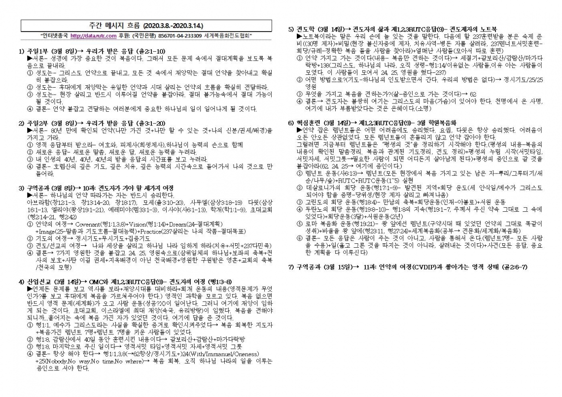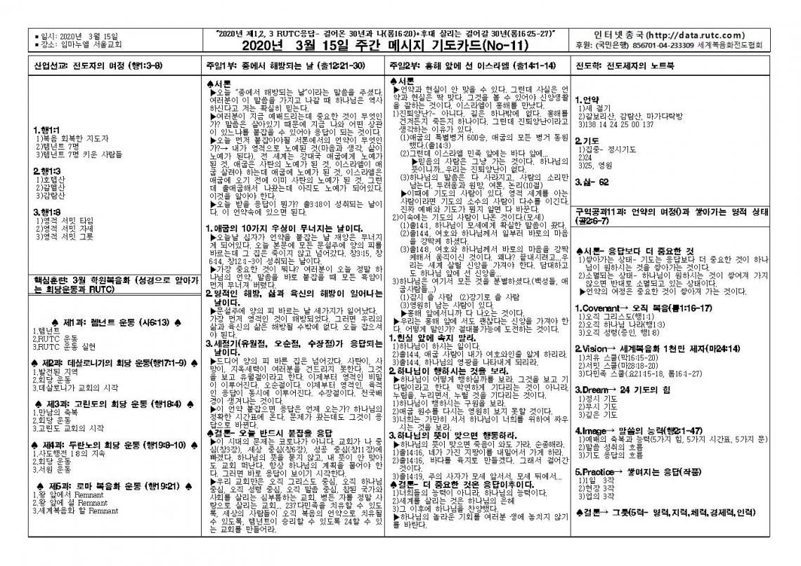 2020년 3월 15일 주일예배 메시지 기도카드