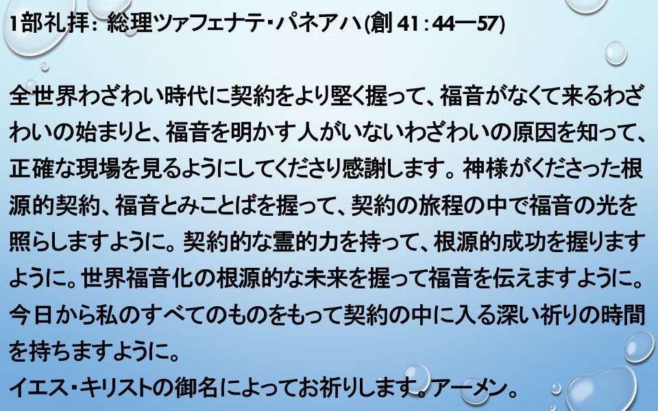 福音の契約を握って、サタンを永遠に縛りあげる祝福を味わいますように。契約の中にある深い祈り、24祈り、25祈りと答えの中に入りますように。