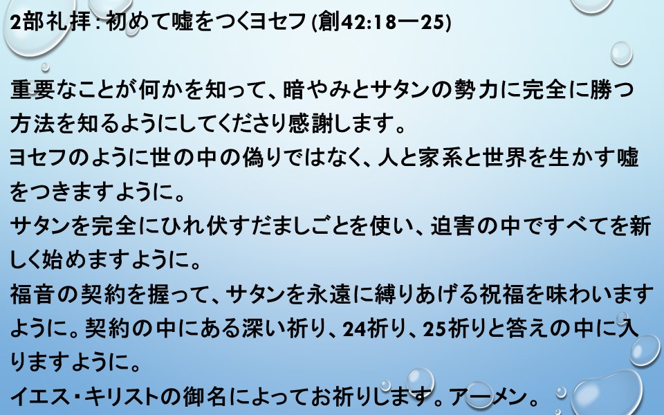 2部礼拝:初めて嘘をつくヨセフ (創42:18ー25)