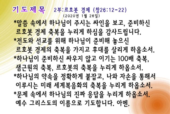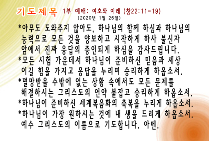 2020년 1월 26일 주일예배 기도제목 – 한국어