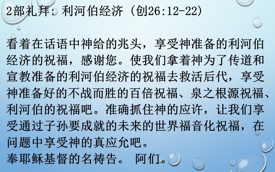 2部礼拜: 利河伯经济 (创26:12-22)