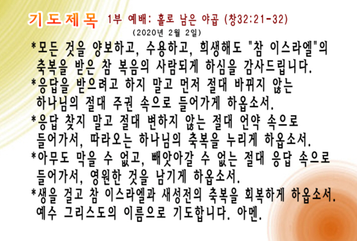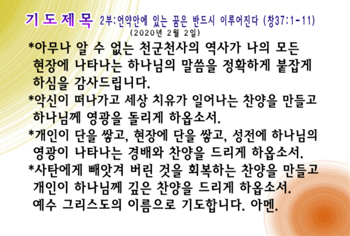 2020년 2월 2일 주일예배 기도제목 – 한국어