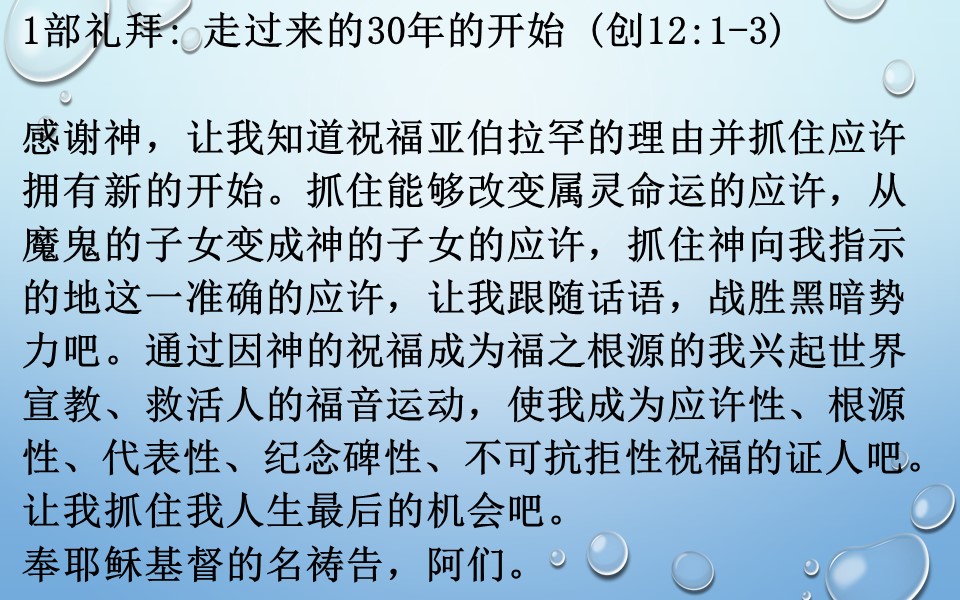 1部礼拜: 走过来的30年的开始 (创12:1-3)