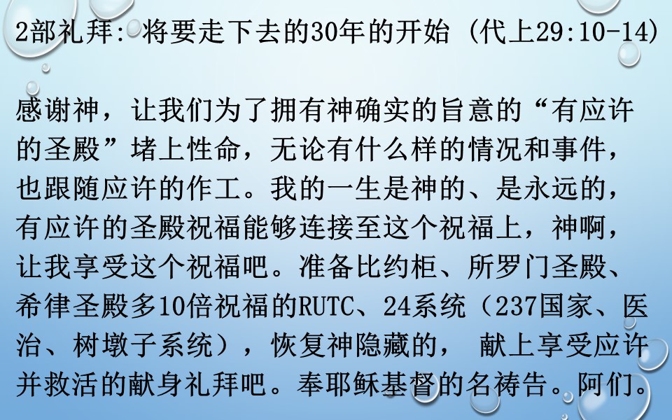 2部礼拜: 将要走下去的30年的开始 (代上29:10-14)