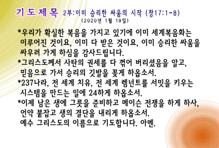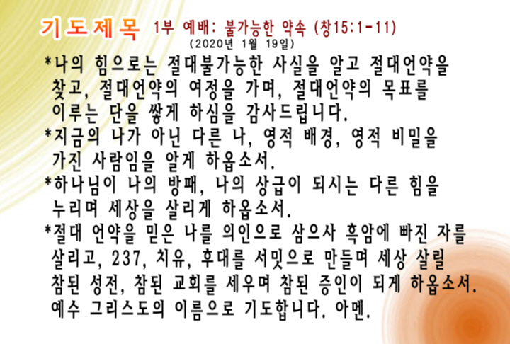 2020년 1월 19일 주일예배 기도제목 – 한국어
