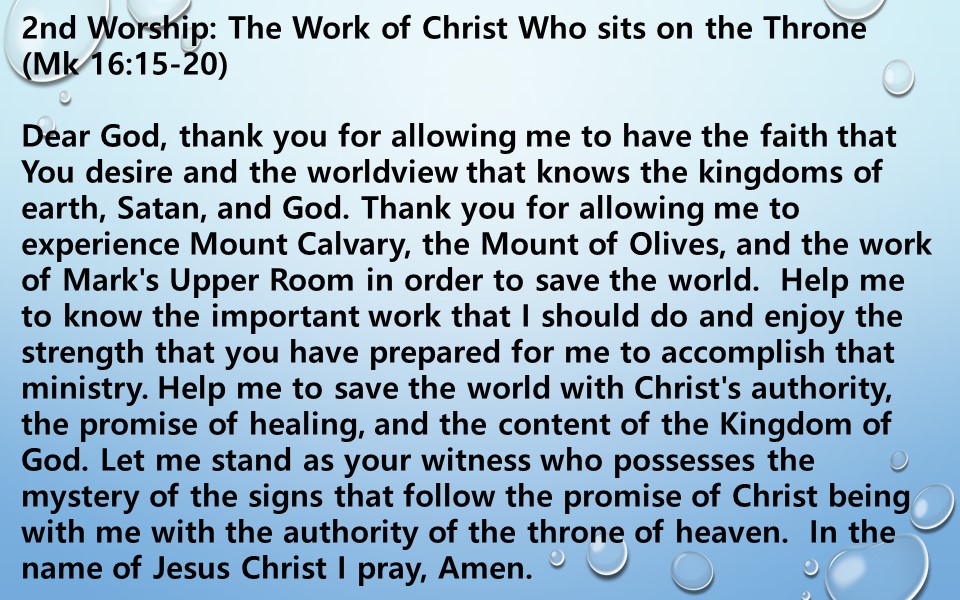2nd Worship: The Work of Christ Who sits on the Throne (Mk 16:15-20)
